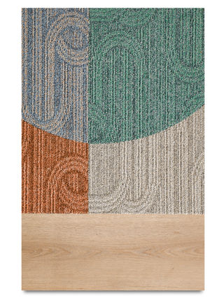 Tarkett's commitment to sustainability was showcased in the Fusion Comfort Lounge in Kortrijk, designed to inspire the public with contemporary flooring solutions. By incorporating elements symbolizing balance, health, and optimism, our styling emphasized sustainability while infusing the space with color and playfulness.